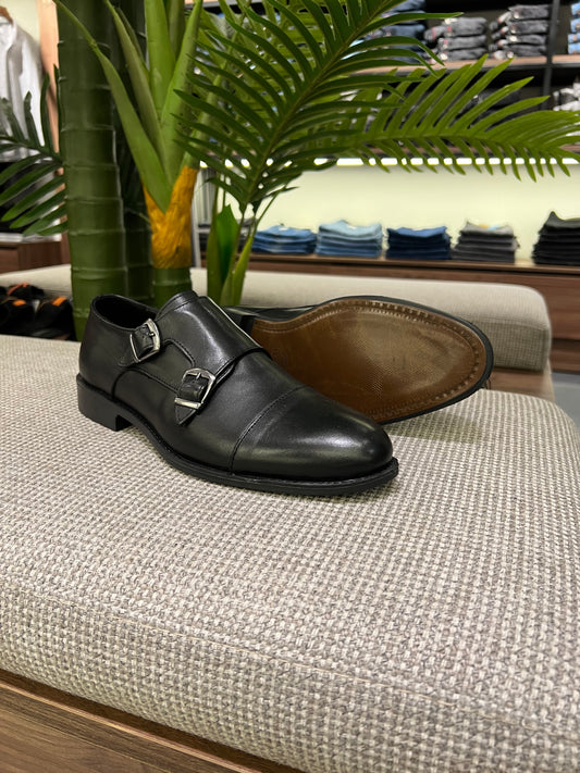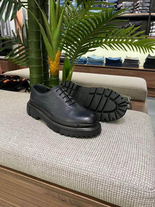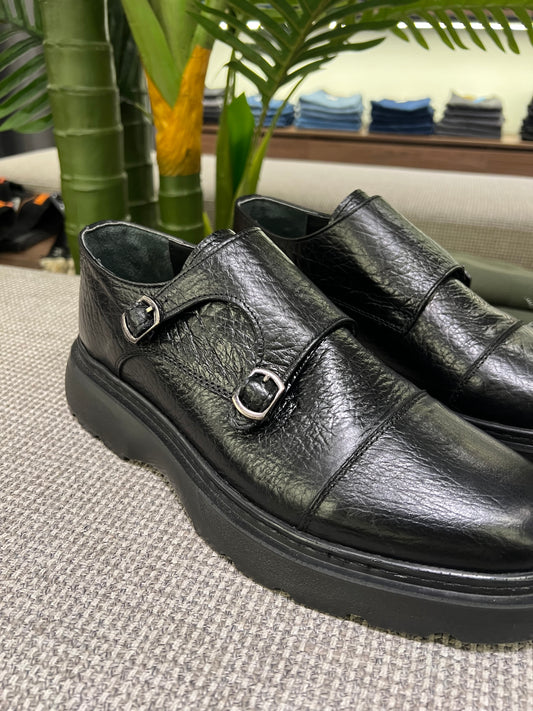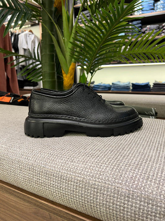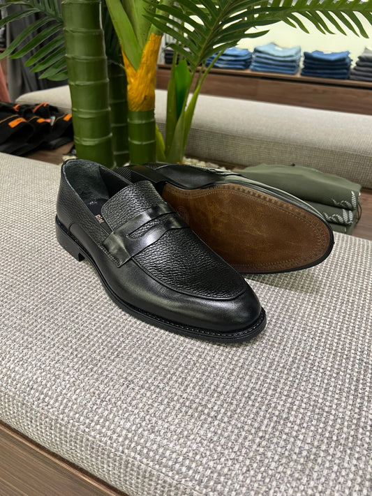 BLACK TEXTURED LEATHER PENNY LOAFER