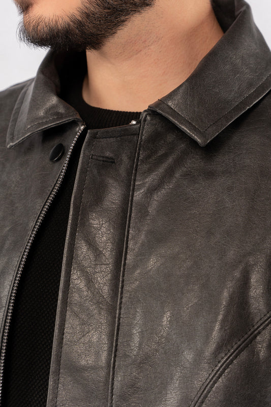 LIGHT BROWN TRUCKER LEATHER JACKET