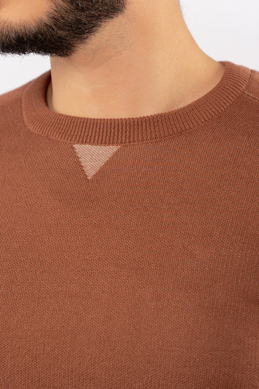 MOCHA ROUND NECK PIQUET SWEATER