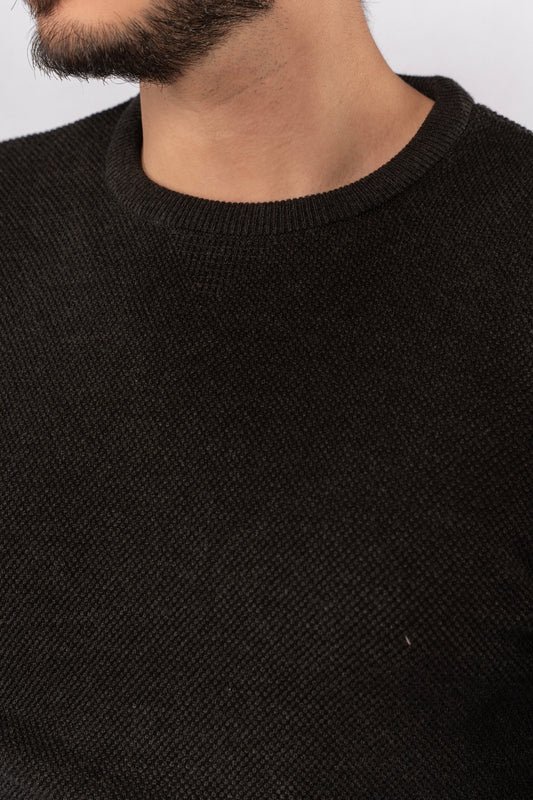 BLACK ROUND NECK PIQUET SWEATER