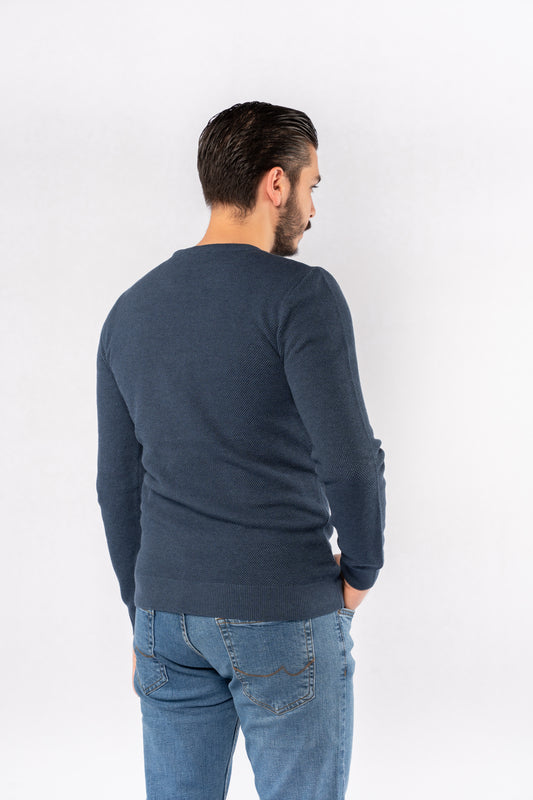 BLUE ROUND NECK PIQUET SWEATER