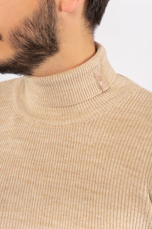 BEIGE LINED TURTLENECK