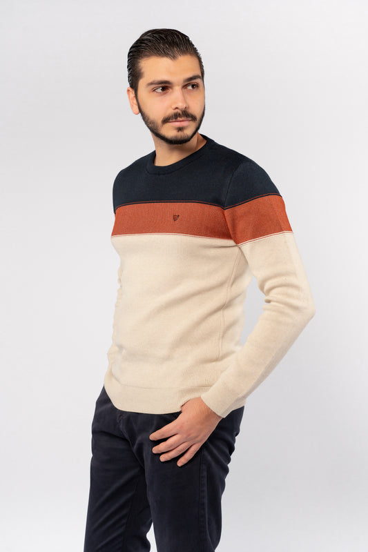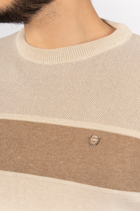 BEIGE TRIO COLOR SWEATER