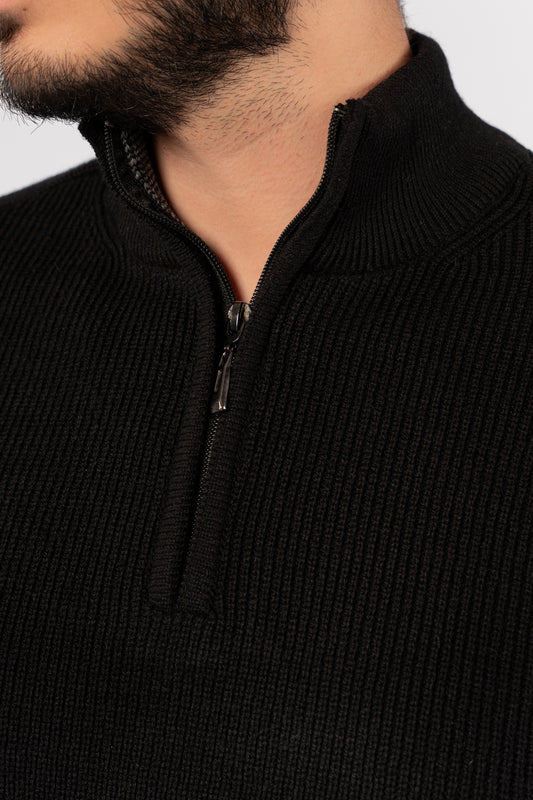 BLACK KNITTED HIGHNECK ZIPPER SWEATER