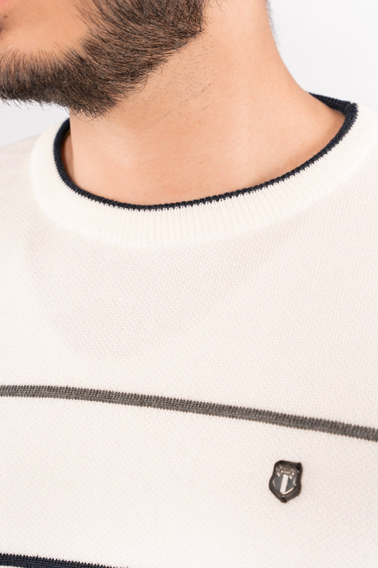 WHITE-NAVY LINE SWEATER