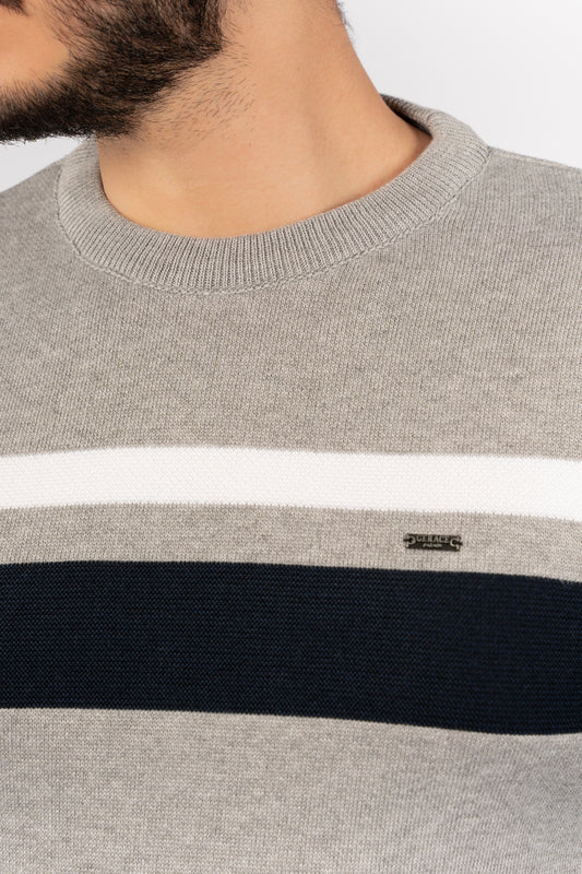 GREY NAVY LINE SWEATER
