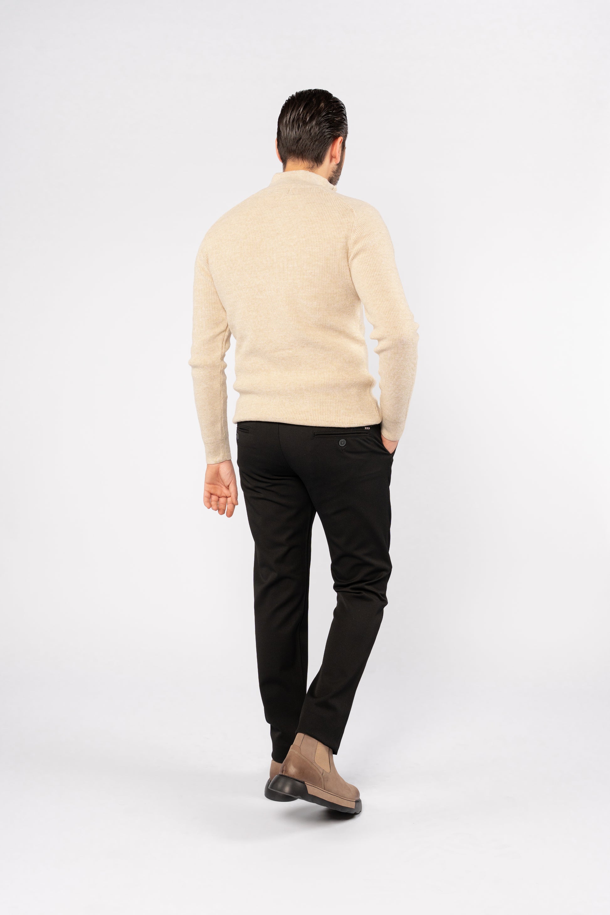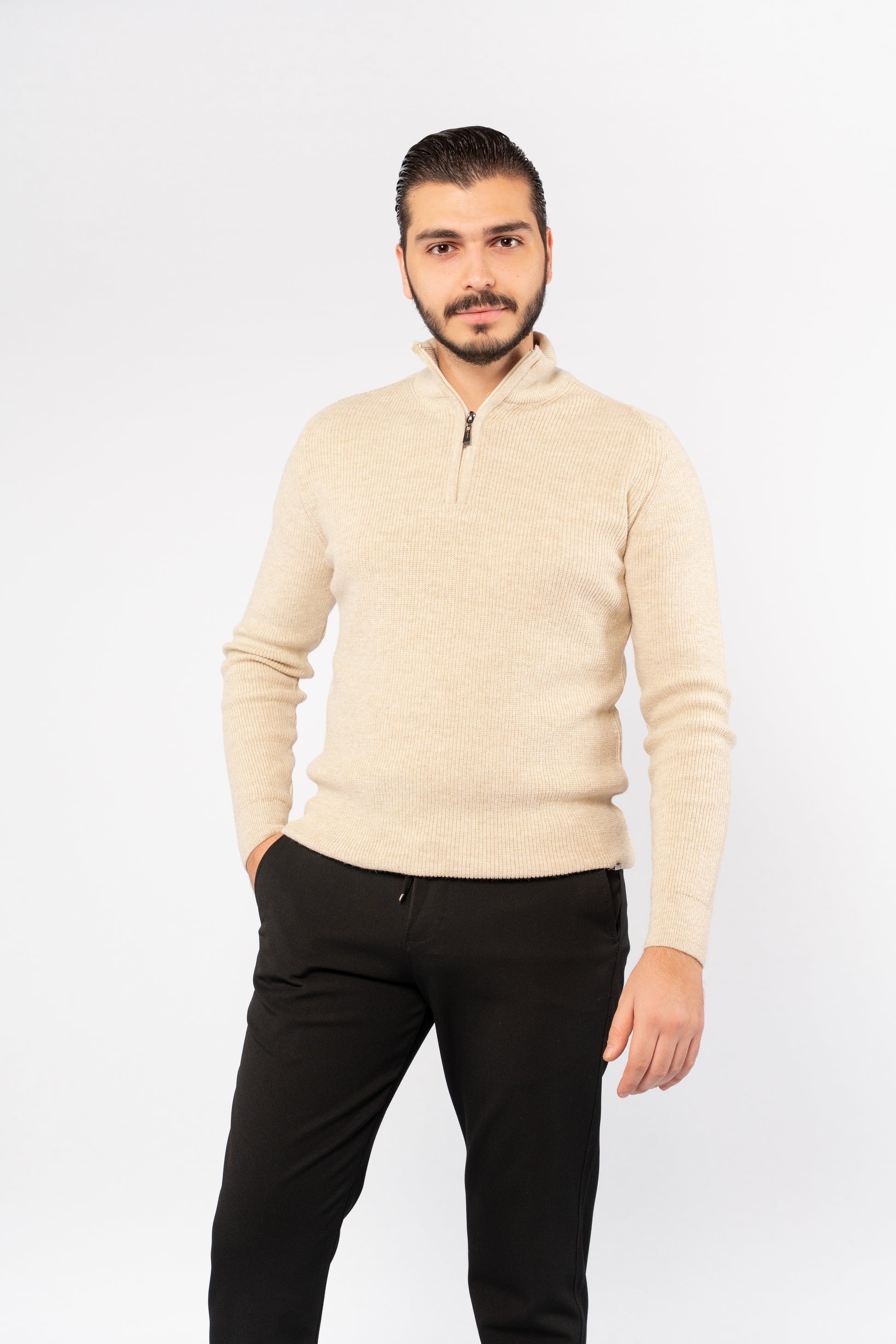 BEIGE KNITTED HIGHNECK ZIPPER SWEATER