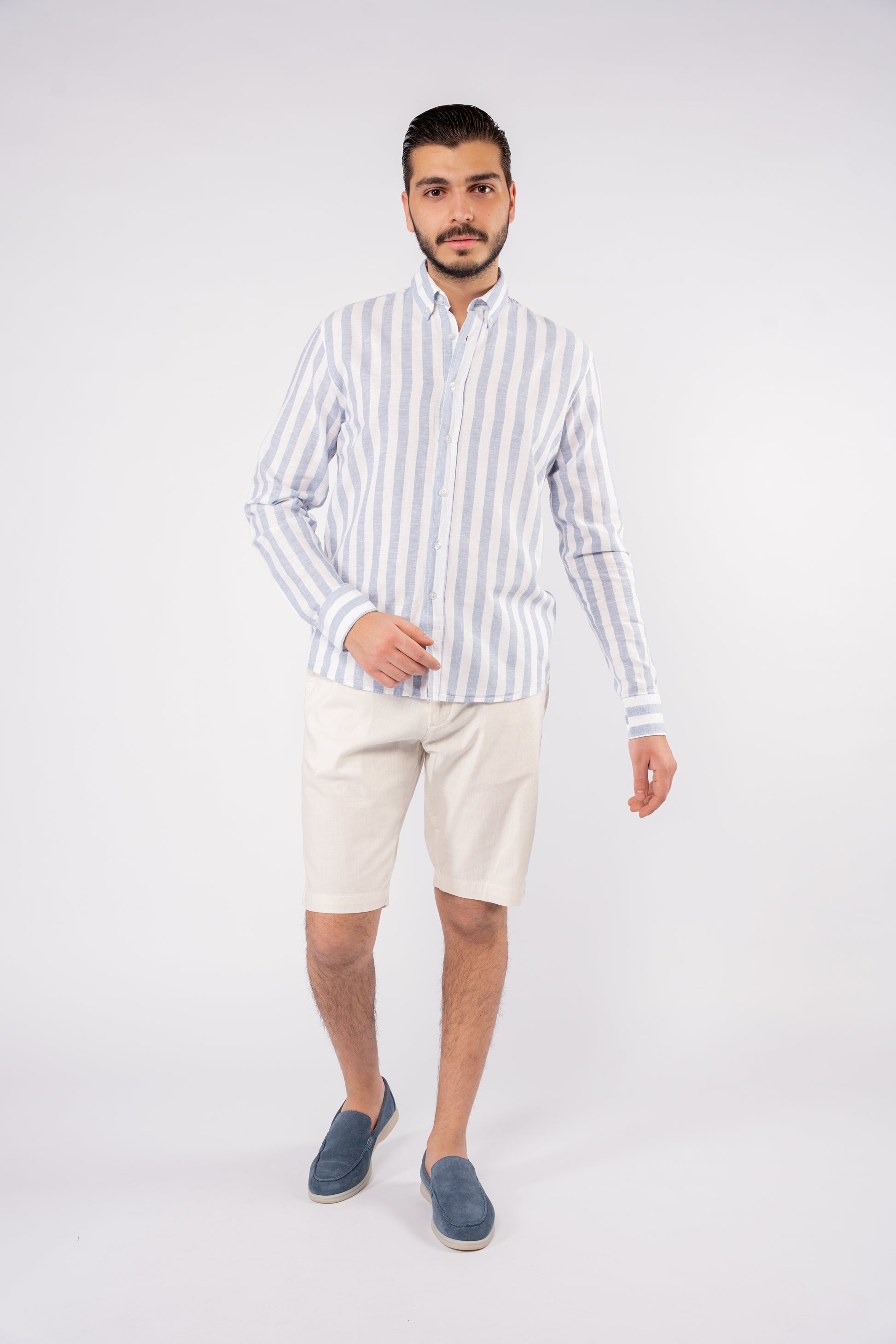 BLUE LINED LINEN SHIRT