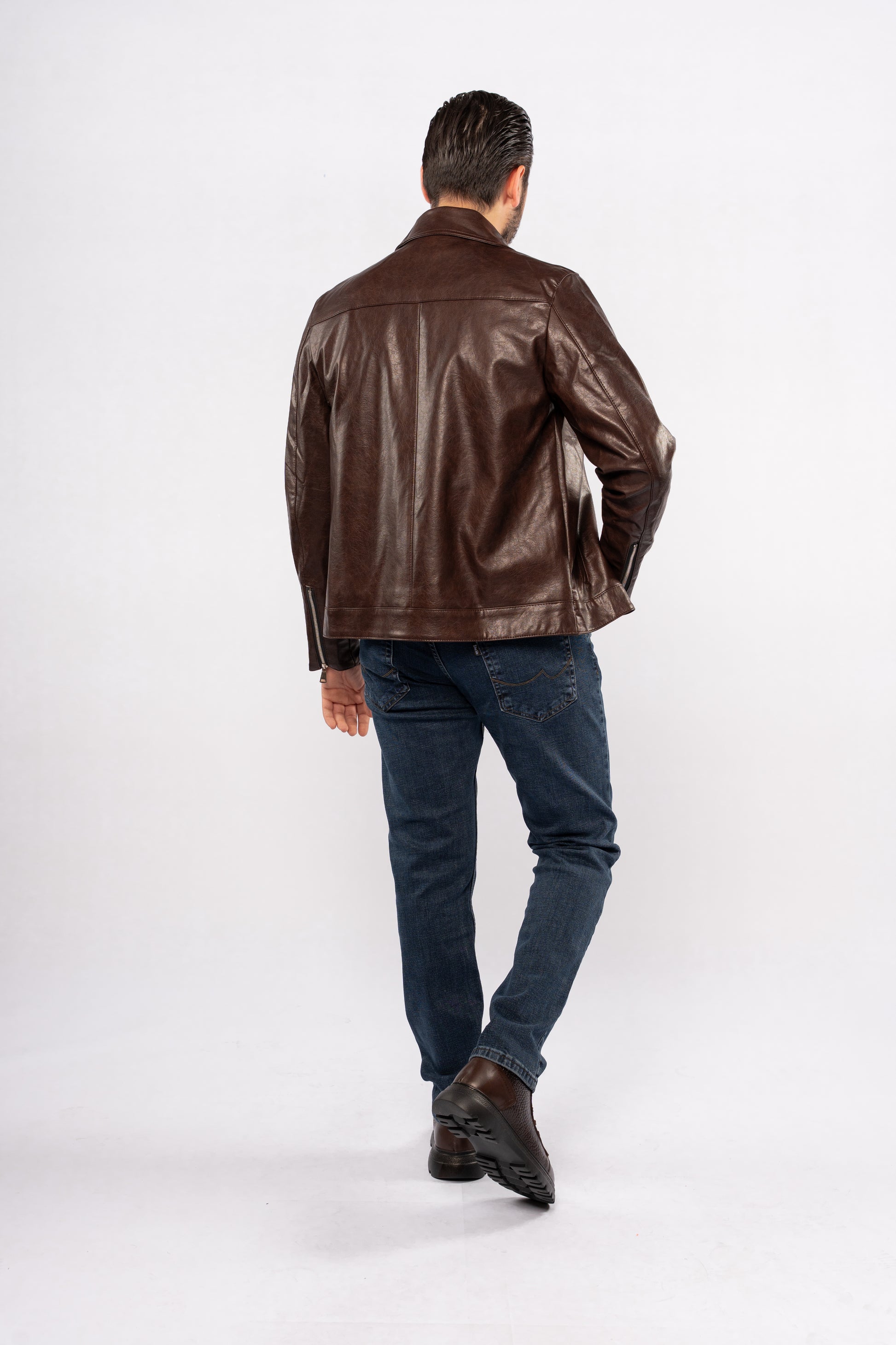 BROWN TRUCKER LEATHER JACKET