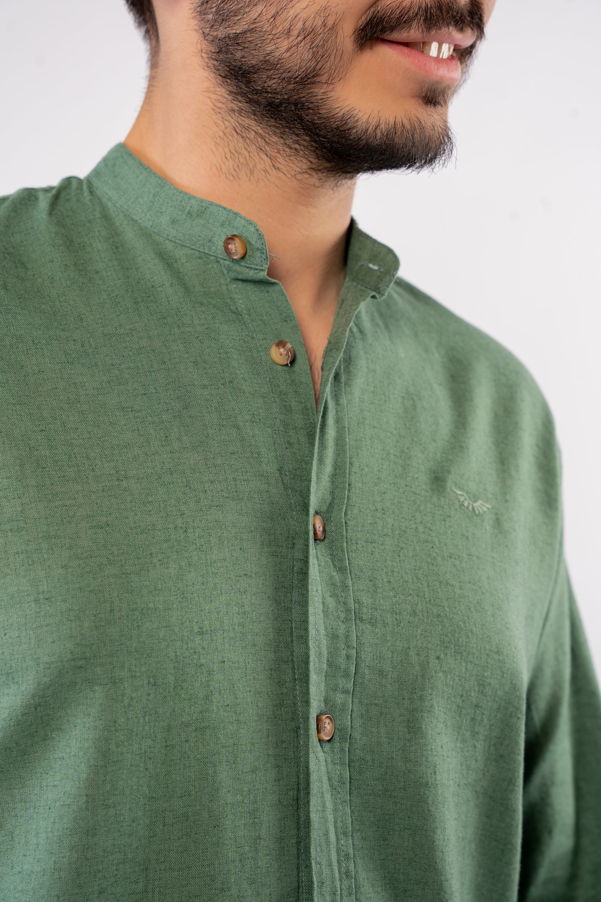 DARK GREEN CHINESE LINEN SHIRT