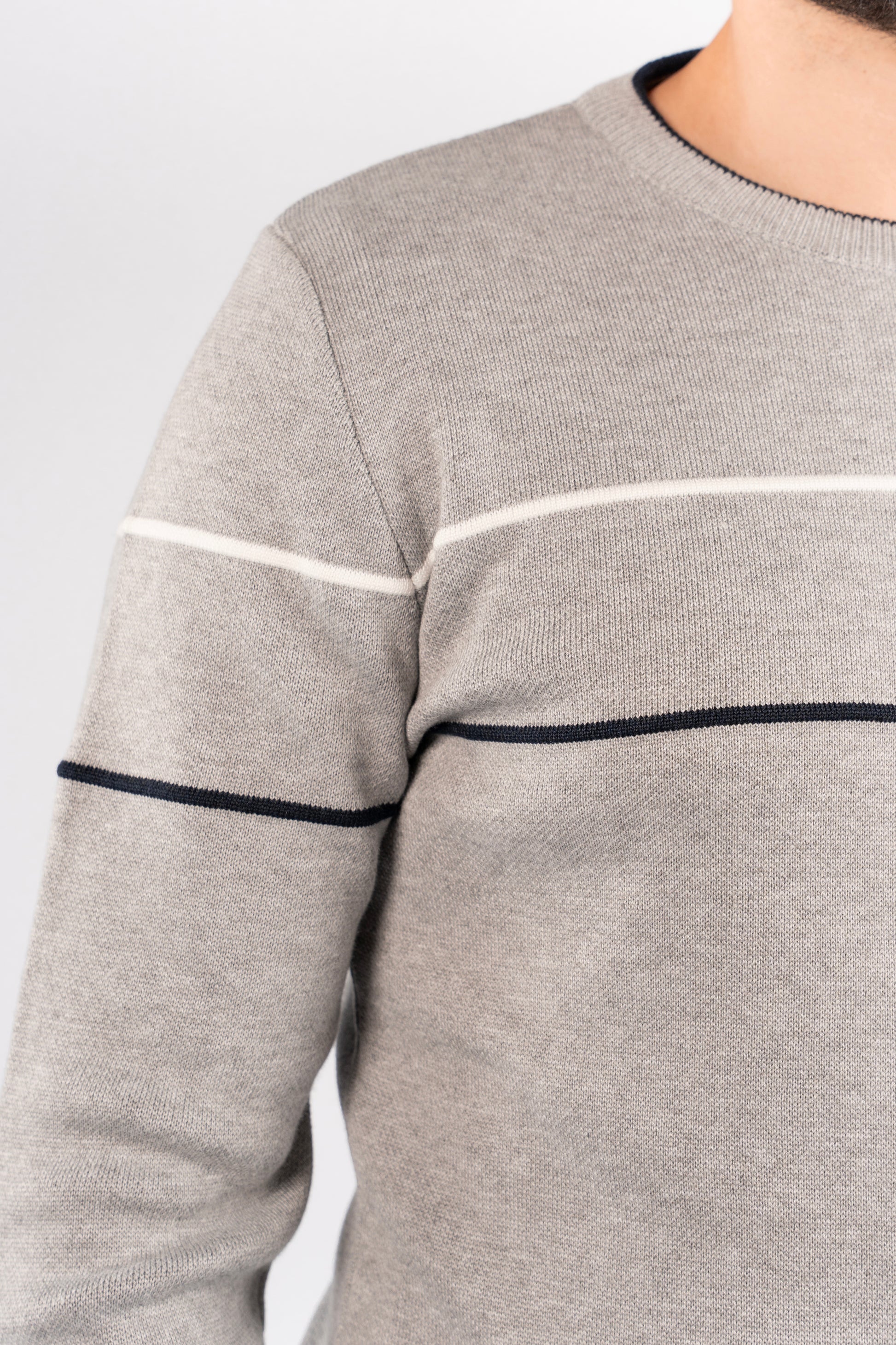 GREY NAVY LINE SWEATER