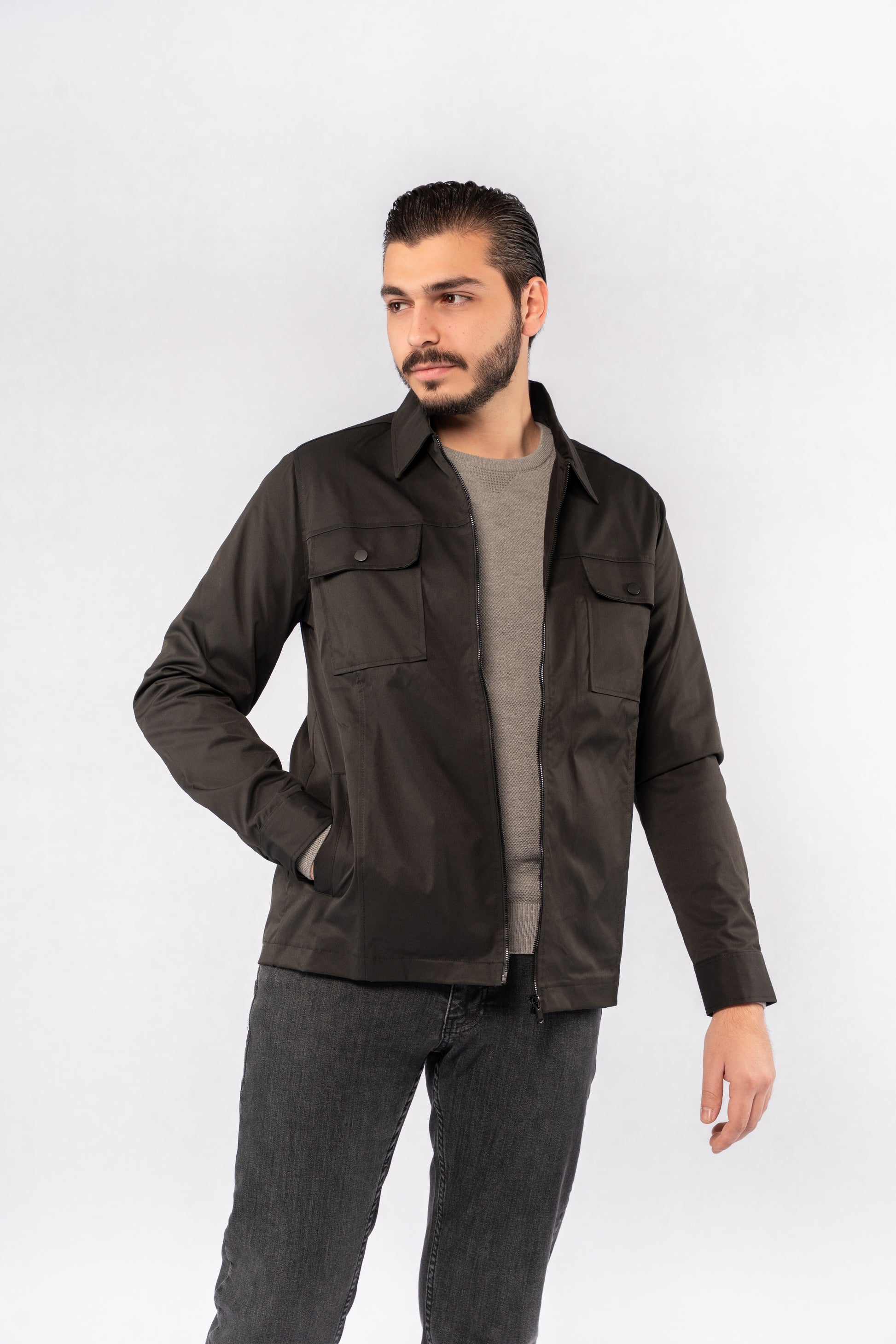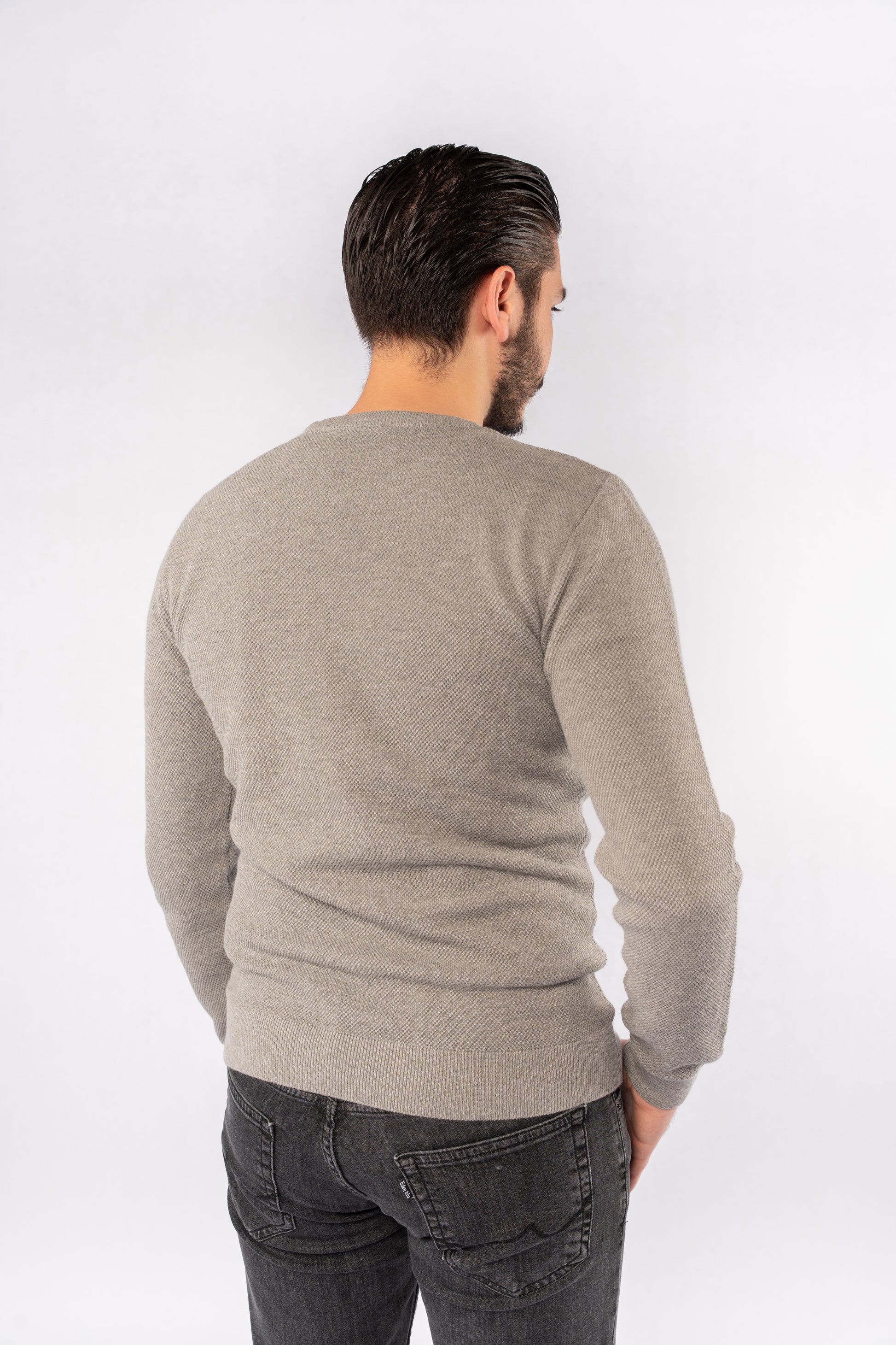 GREY ROUND NECK PIQUET SWEATER